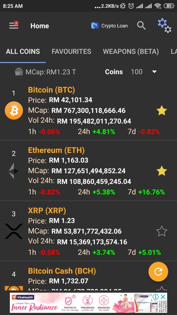 5.Boleh berurusniaga guna 42 jenis matawang crypto.